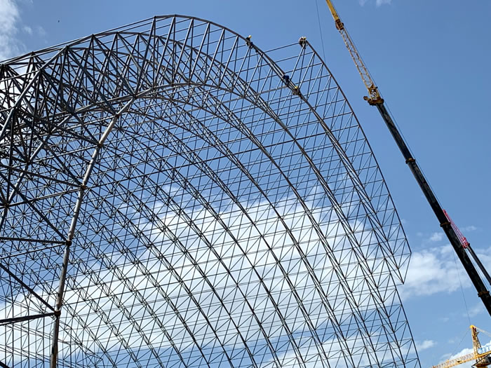 (2)网架加工前应对现场尺寸进行复测,确认无误后方可进行加工、安装;网架制作、运输、安装应遵守《空间网格结构技术规程》JGJ7-2010、《钢网架宝鸡螺栓球节点》JG/T 10-2009、《钢网架宝鸡螺栓球节点用高强度螺栓》 GB/T 16939-2016、《宝鸡钢结构宝鸡工程宝鸡施工规范》 GB50755-2012、《宝鸡钢结构宝鸡工程施工质量验收标准》 GB50205-2020。